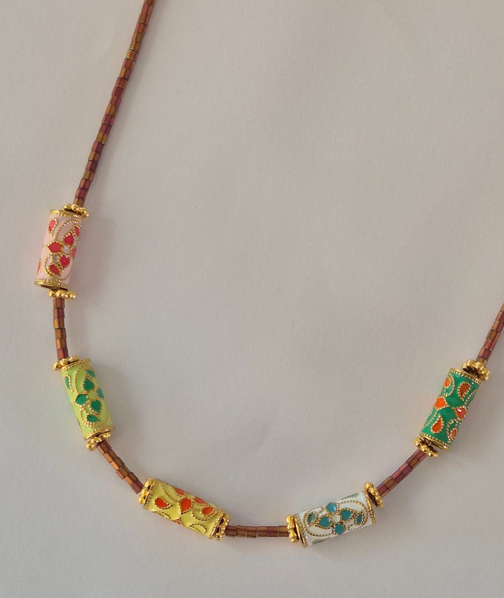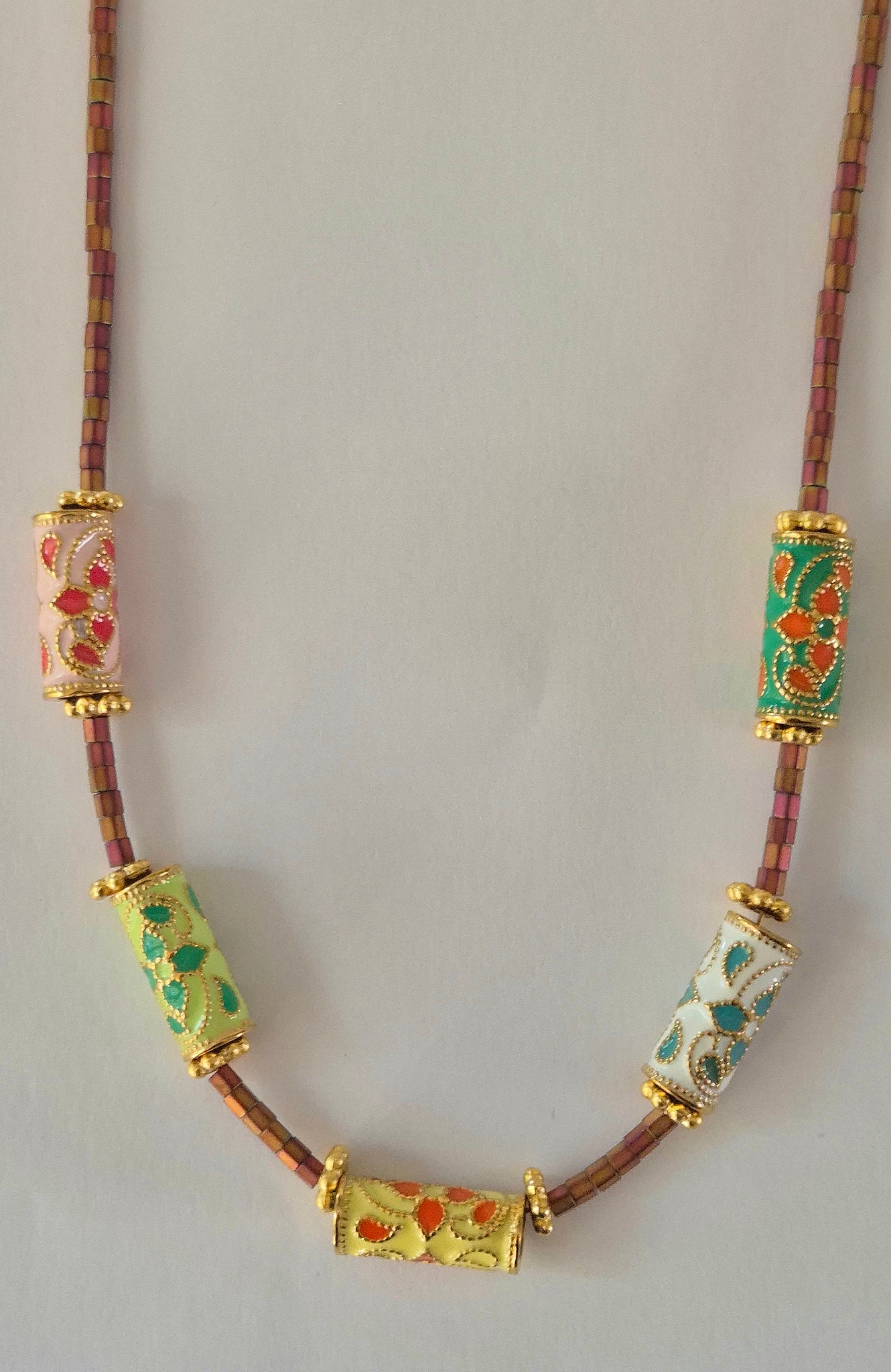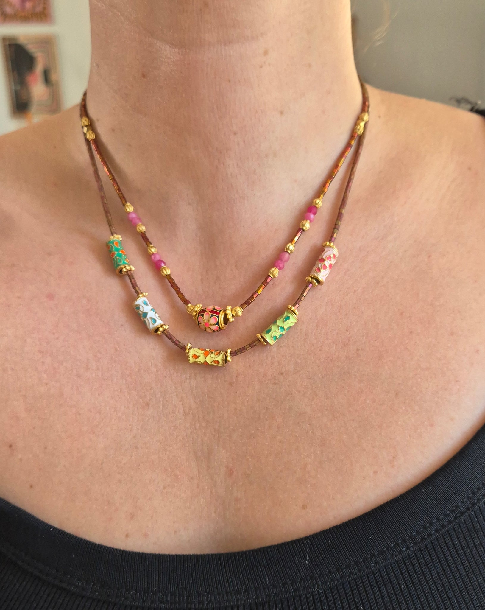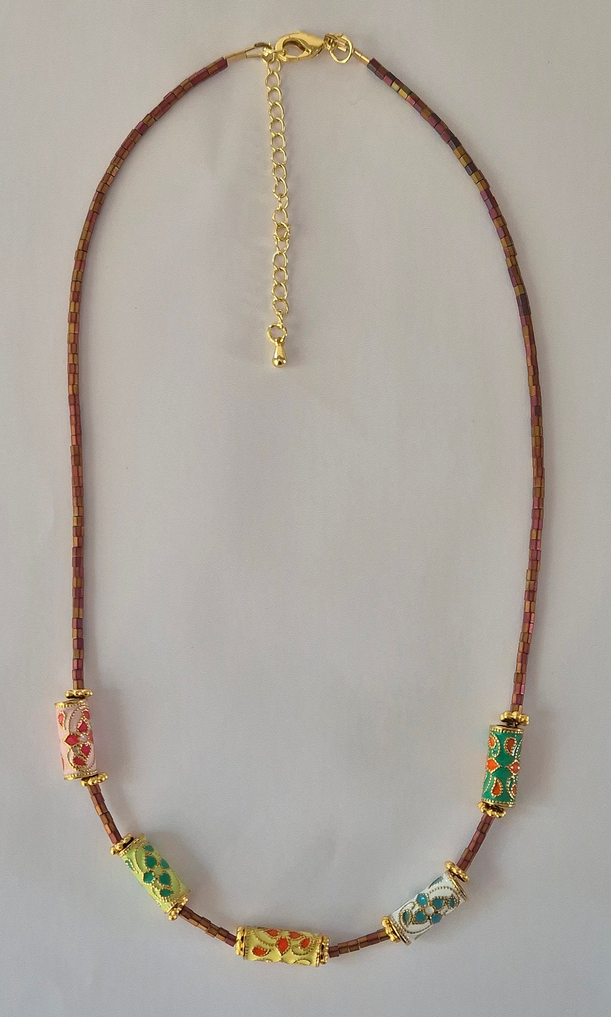 Composé de perles en Hématite et perles cloisonnées en émail.