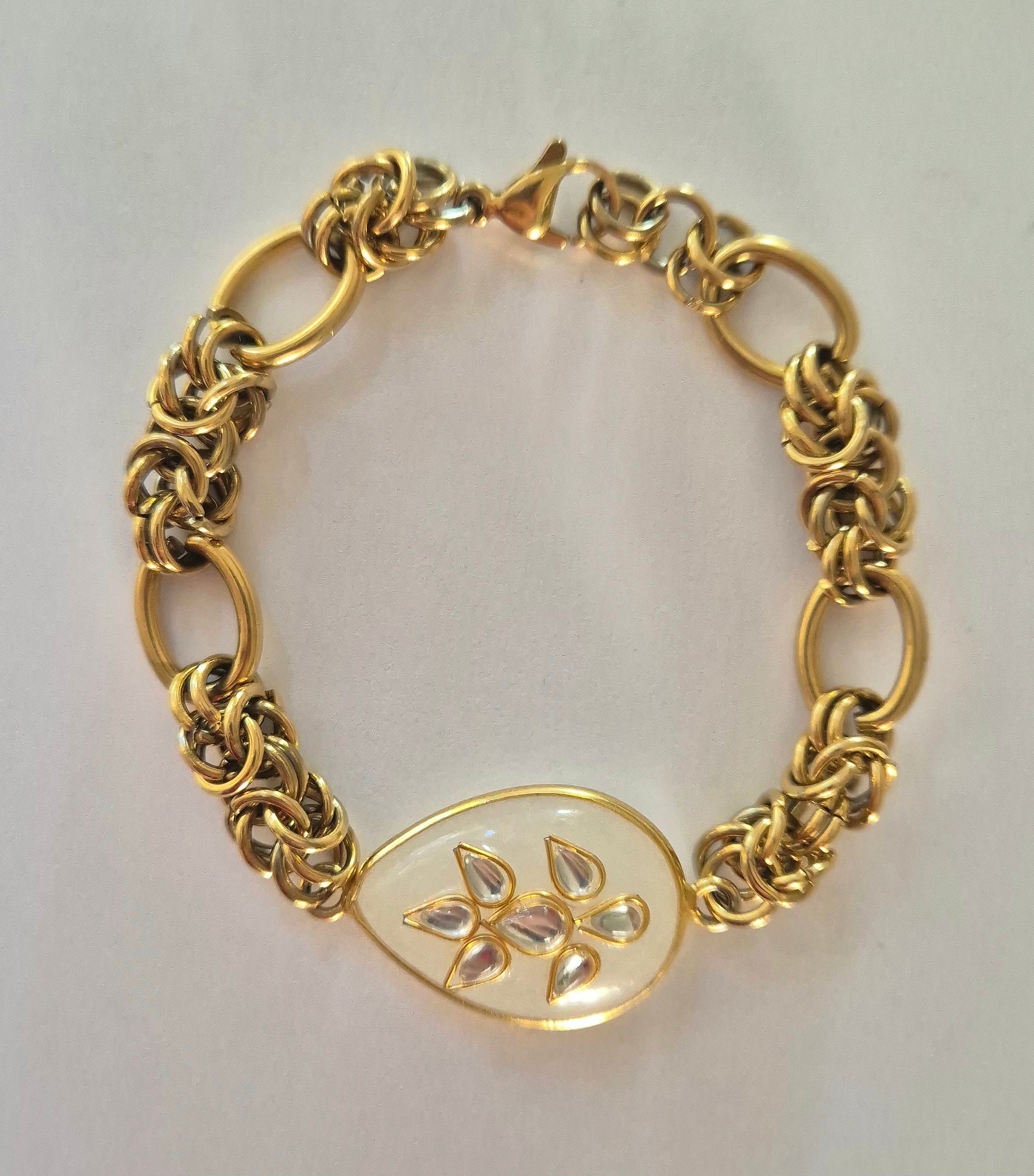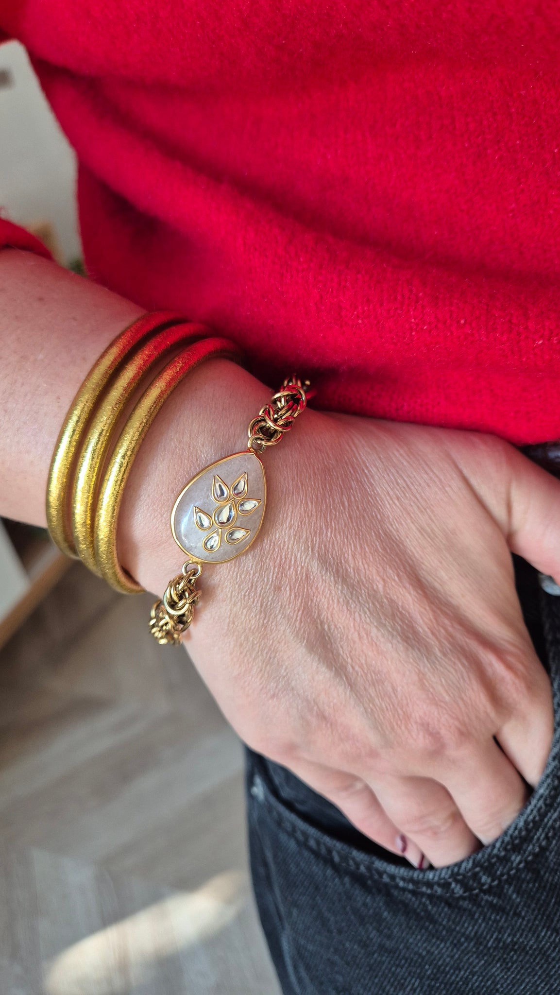 Perles centrale en Calcédoine blanche et zircons cristal.